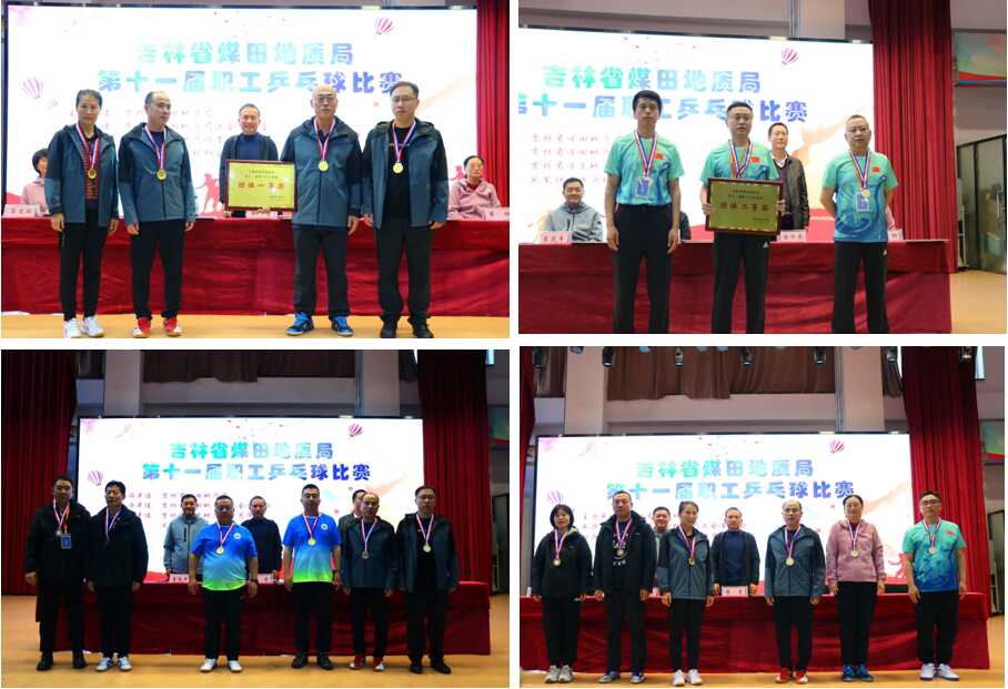 本届赛事由省煤田地质局主办,省煤田地质局工会承办,共设有团体赛和男单,女单,男双,女双,混双六项比赛,来自局机关及直属单位10支代表队参与比赛。在比赛过程中,参赛选手们全身心投入比赛,用精湛的球技和拼搏的精神,赢得了现场观众的喝彩,展现了地质人良好的精神风貌。经过小组赛及决赛激烈角逐,物测队代表队荣获团体一等奖,公主岭钻探机械厂代表队获得团体二等奖,基础公司和203勘探队代表队荣获团体三等奖。来自物测队的王彬获得男单冠军,局机关选手董红摘得女单桂冠,203勘探队刘树明、黄维国赢得男双冠军,局机关董红、郑红获得女双冠军,物测队金秀芹、王彬荣获混双冠军。